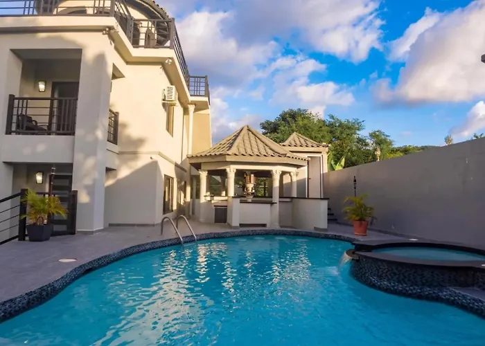Located about 5 minutes' walk from Blue Diamond Shopping Centre, the 1-bedroom Pinnacle View Estate Tiana Villa Montego Bay gives easy access to various tourist attractions in the area. Staying at the property, which is 3.7 km from the resort pool bars, guests can benefit from a Jacuzzi, along with an outdoor swimming pool.